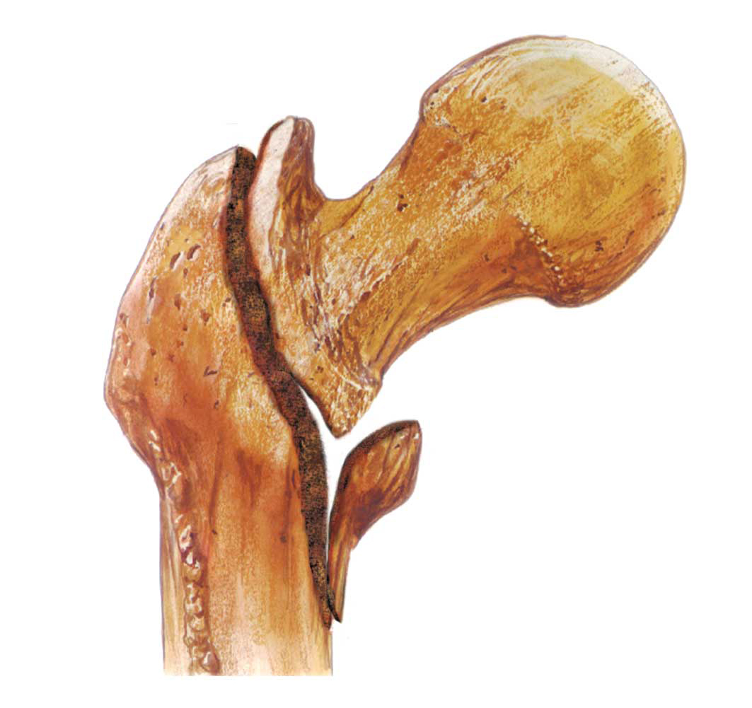 A2.3 Extendiéndose más de 1 cm por debajo del trocánter menor.