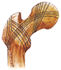El patrón trabecular de la cabeza femoral está orientado en su posición normal con el del acetábulo.