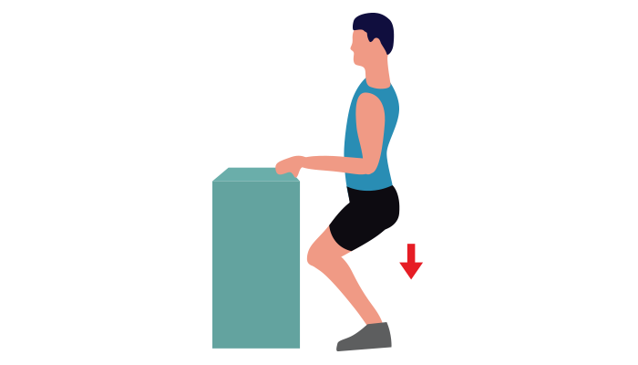 De pie y apoyándose con las manos en una mesa, bajar flexionando las rodillas y luego subir manteniendo la espalda recta.