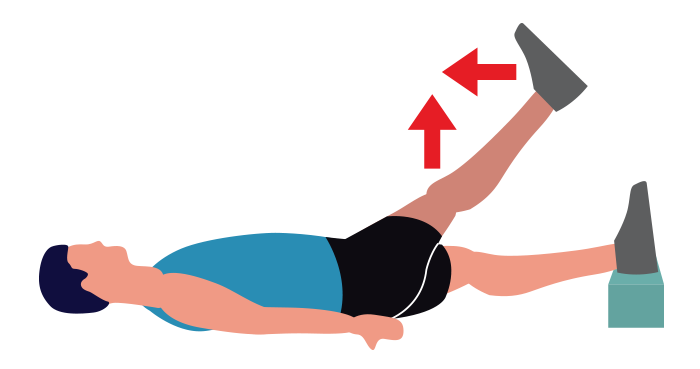 Acostado boca arriba, con las piernas extendidas y partiendo desde un apoyo de 30-40 cm. levantar alternativamente las piernas hacia la vertical (se puede añadir peso a nivel del tobillo).