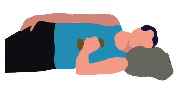 Rotación Externa: Mantenga su codo doblado a 90 grados lateralmente. Sostenga un peso ligero, eleve su mano lejos del estómago y regrese lentamente. Repetir 10 veces. Realizar este ejercio 3 veces al día.