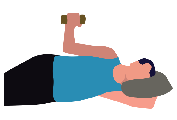 Rotación Interna del Hombro: Mantenga su codo doblado a 90 grados. Sosteniendo una pesa ligera, eleve su mano hacia el estómago y regresando lentamente. Repetir 10 veces. Realizar este ejercicio 3 veces por día