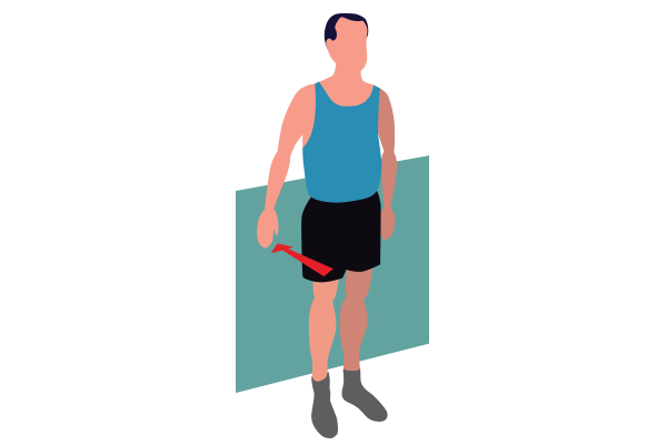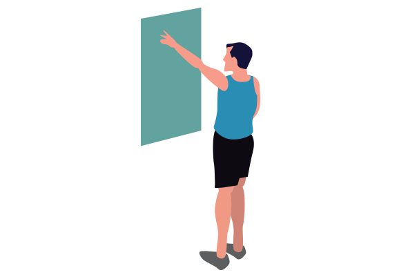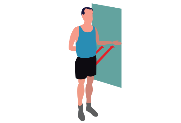 Extensión del Hombro (Isométrica): Colóquese con la espalda contra la pared y sus brazos rectos hacia los costados. Manteniendo los codos derechos, empuje sus brazos contra la pared durante 5 segundos y luego relaje. Repetirlo 10 veces.